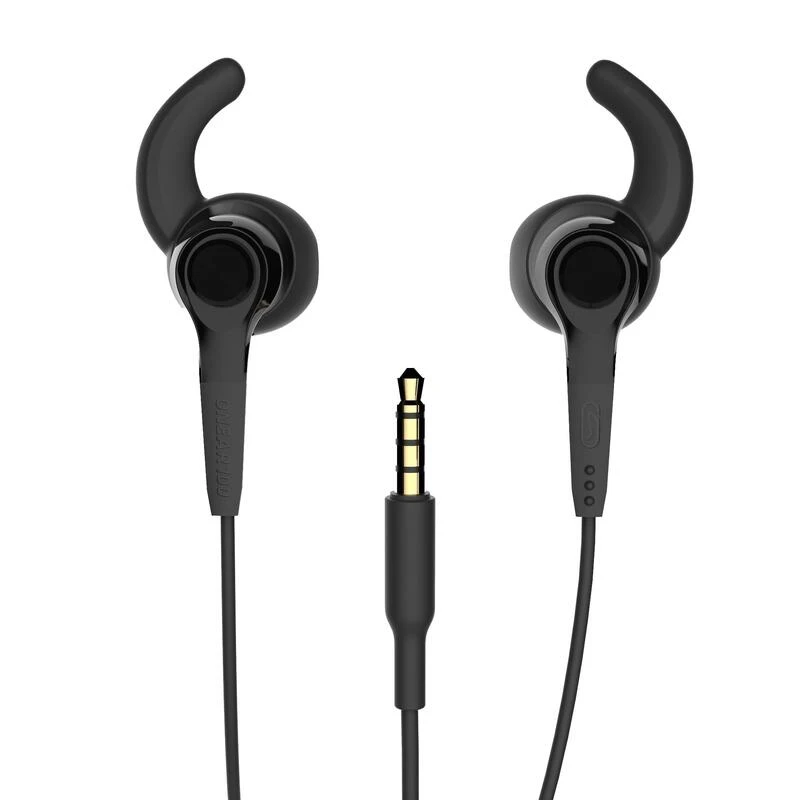 Les Ă©couteurs running Decathlon ONEAR 100 sont Ă©quipĂ©s dâune tĂ©lĂ©commande et dâun micro pour :